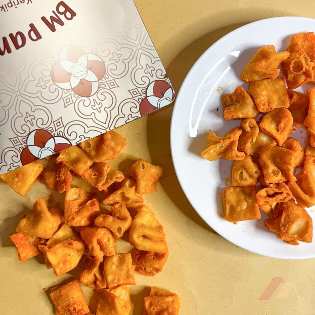 Snack pangsit rasa Balado asli Kuningan, tanpa pengawet dan pewarna. Isi 150gram.