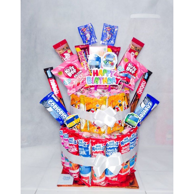 Disini snack yang didesain seperti kue ulang taun,lucu sekalii kan dan cocok untuk hadiah dibari ulang taunn