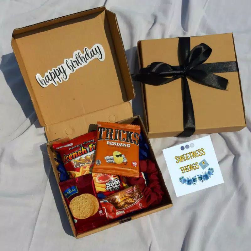 Yuk guy's Hampers Snack box ,,Cocok bgt buat ultah tmn/pacar,,Snack kita yg pilih ya ,,Harga? Murah bgt pas dikantong lagi 25 rb doang,, murah kan? Pastinya☺️