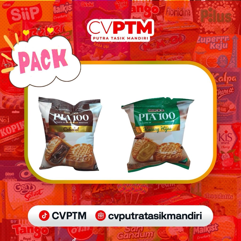 Camilan klasik khas Indonesia kini hadir dalam kemasan praktis! Snackit Kue Pia 100 menghadirkan rasa legit dengan isian cokelat dan kacang ijo yang lembut di dalam, dibungkus kulit pia yang empuk dan wangi. Cocok untuk teman ngopi, bekal, atau suguhan keluarga!