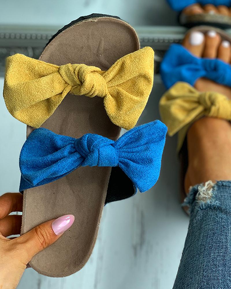 Snakeskin Pattern / Colorblock Bowknot Design Footbed Sandals, Yellow