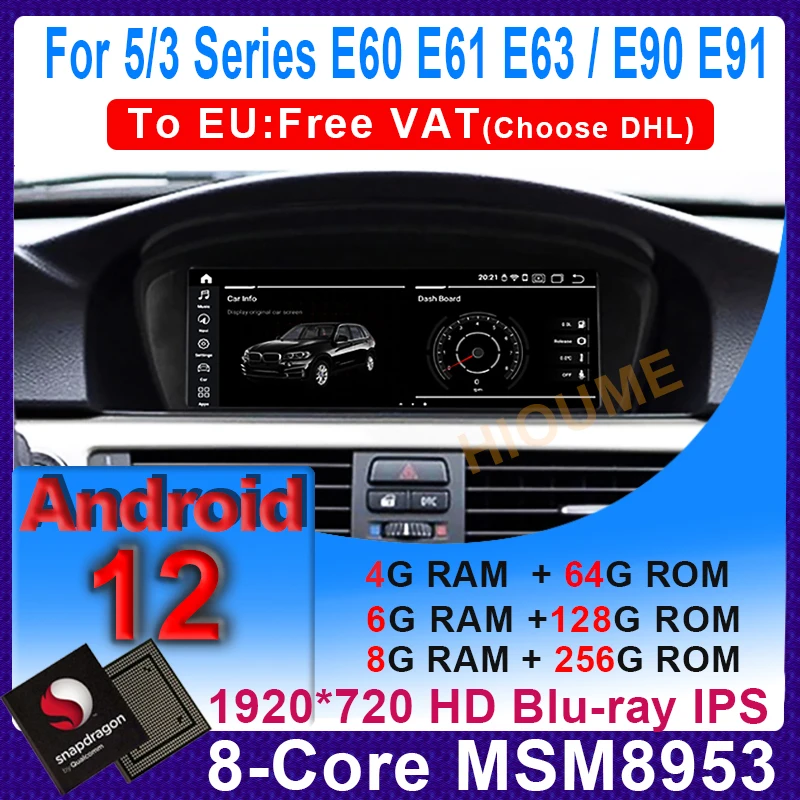 Snapdragon 8 + 256G Android 12 Автомобильный мультимедийный плеер GPS радио для BMW 5 серии E60 E61 E62 E63 3 серии E90 E91 CCC/CIC