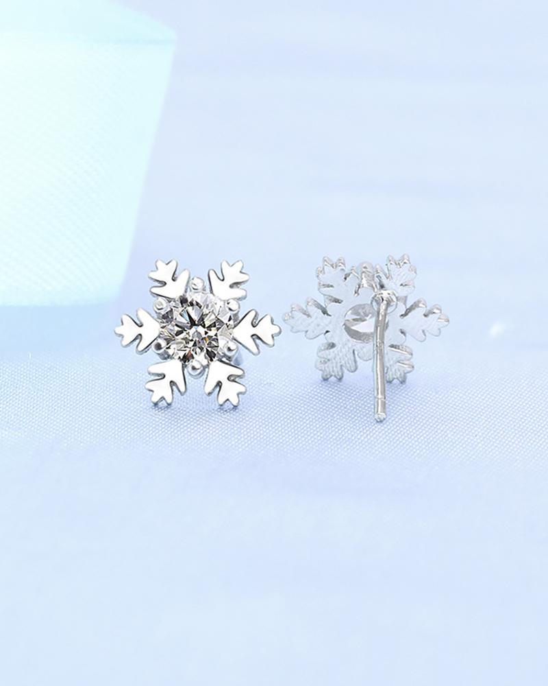 Snowflake Pattern Rhinestone Earrings, Silver