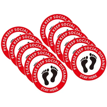 Social Distancing Floor Decals Sticker 10 Pcs Removable Safety Floor Signs Round Signs Waterproof Anti-Slip Sticker