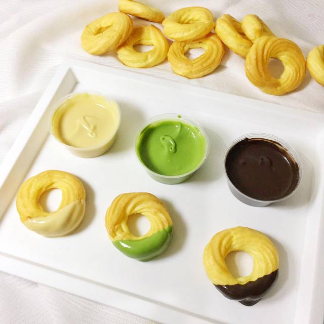 Soes kering dinikmati dengan glaze bermacam macam rasa :