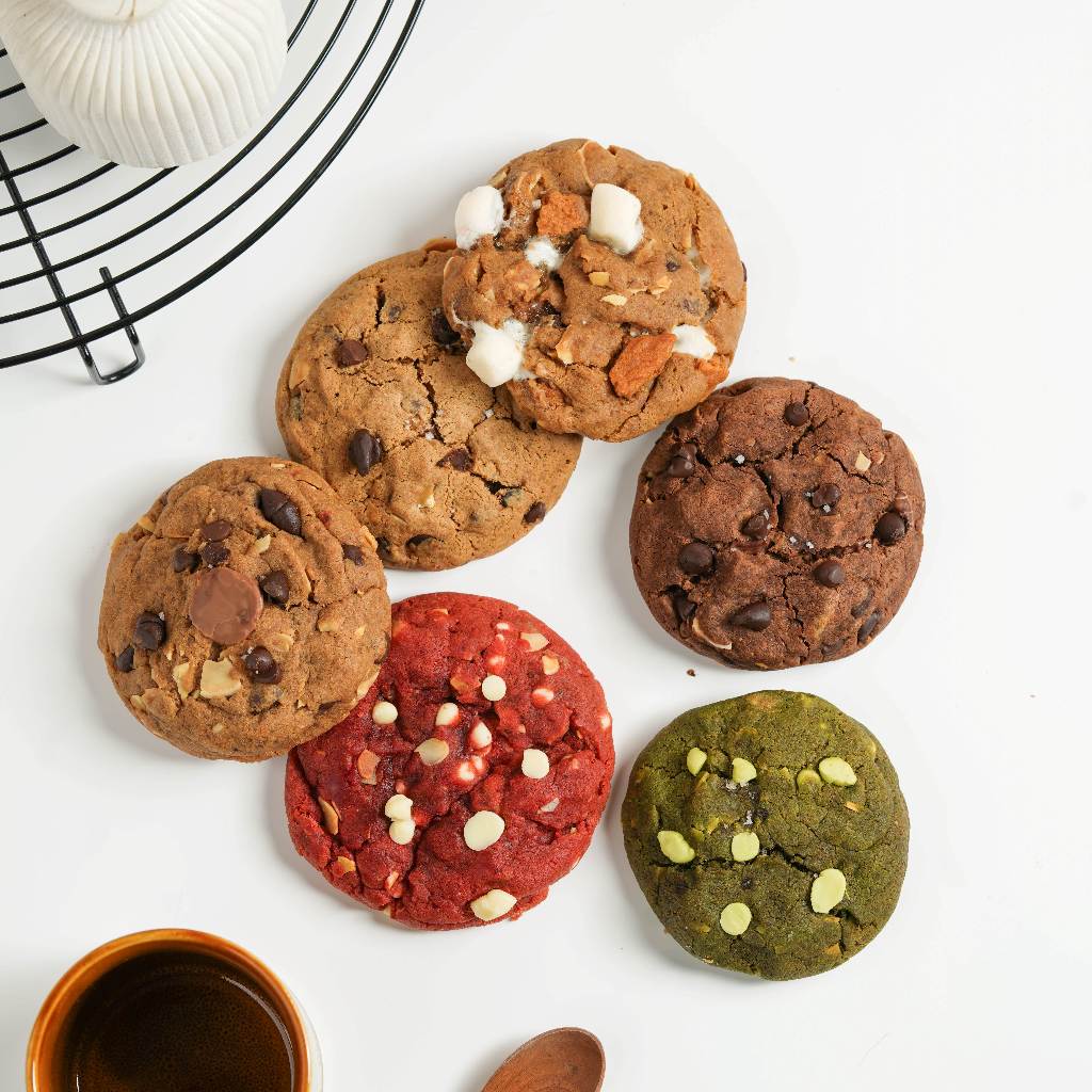 Soft Baked Cookies kami sudah kami Froze selama beberapa hari agar rasa semakin nikmat dan cookies kami crispy diluar dan lembut dibagian dalam dan melty didalam, Cookies kami memiliki beberapa rasa :