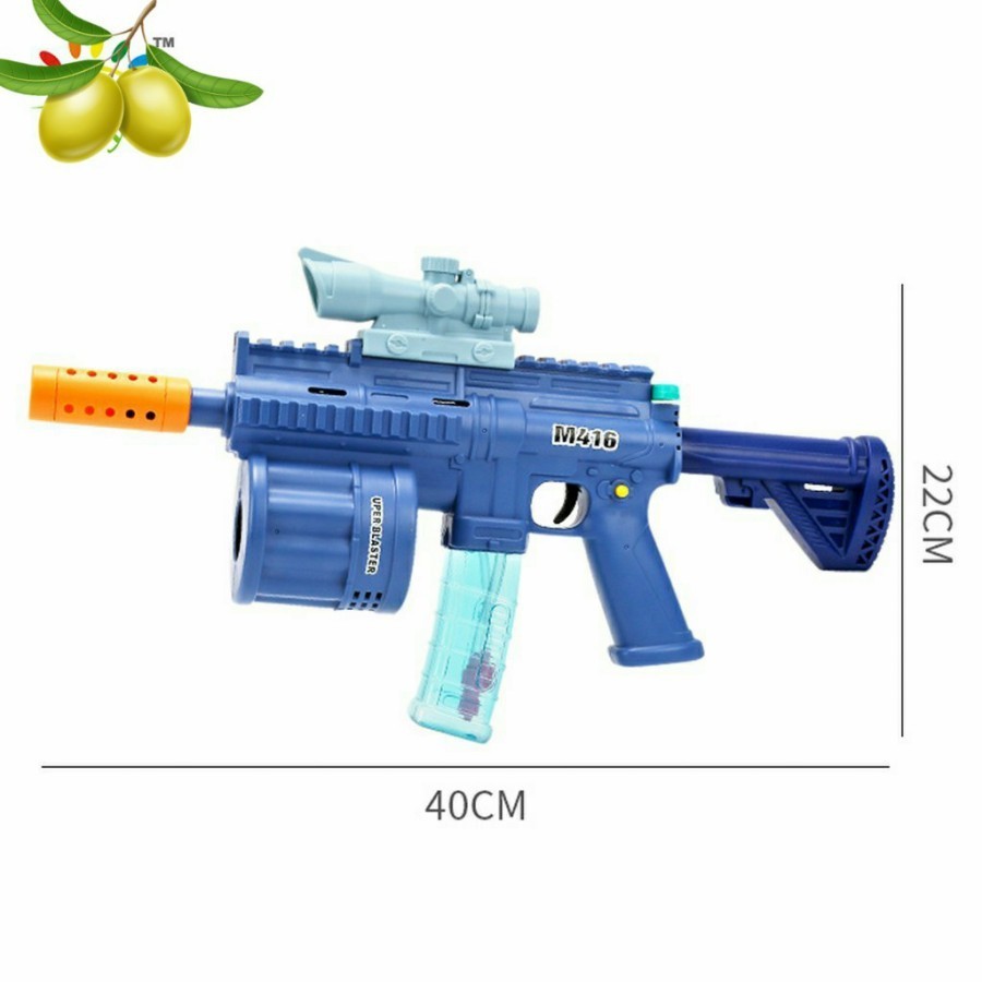 Mainan tembakan yang menggunakan peluru dari busa, cara baru main tembak tembakan yg aman untuk dimainkan anak-anak. Dilengkapi dengnan mesin peniupan bubble dan led sebagai fitur tambahan.
