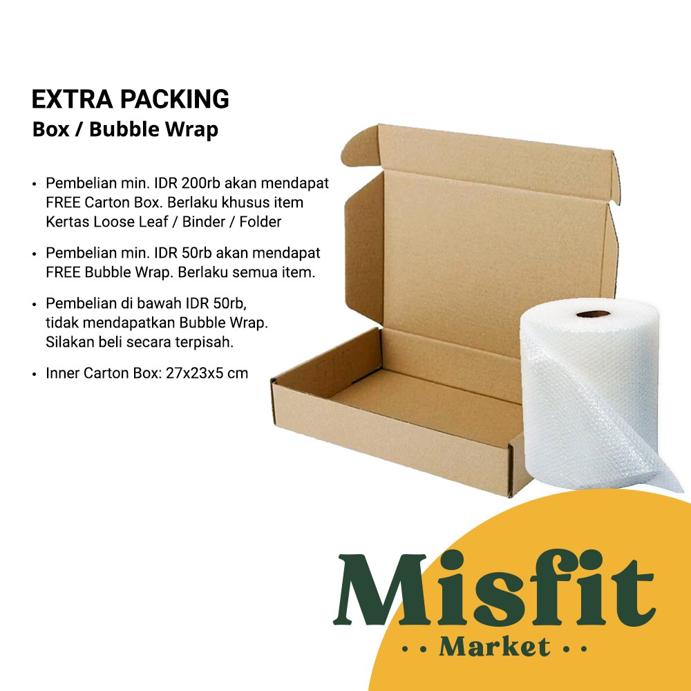 - Pembelian di bawah IDR 50rb, tidak mendapatkan Bubble Wrap. Silakan beli secara terpisah.