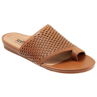 SoftWalk Женские кожаные шлепанцы на плоской подошве Corsica, шлепанцы, обувь BHFO 3230, Luggage, Corsica