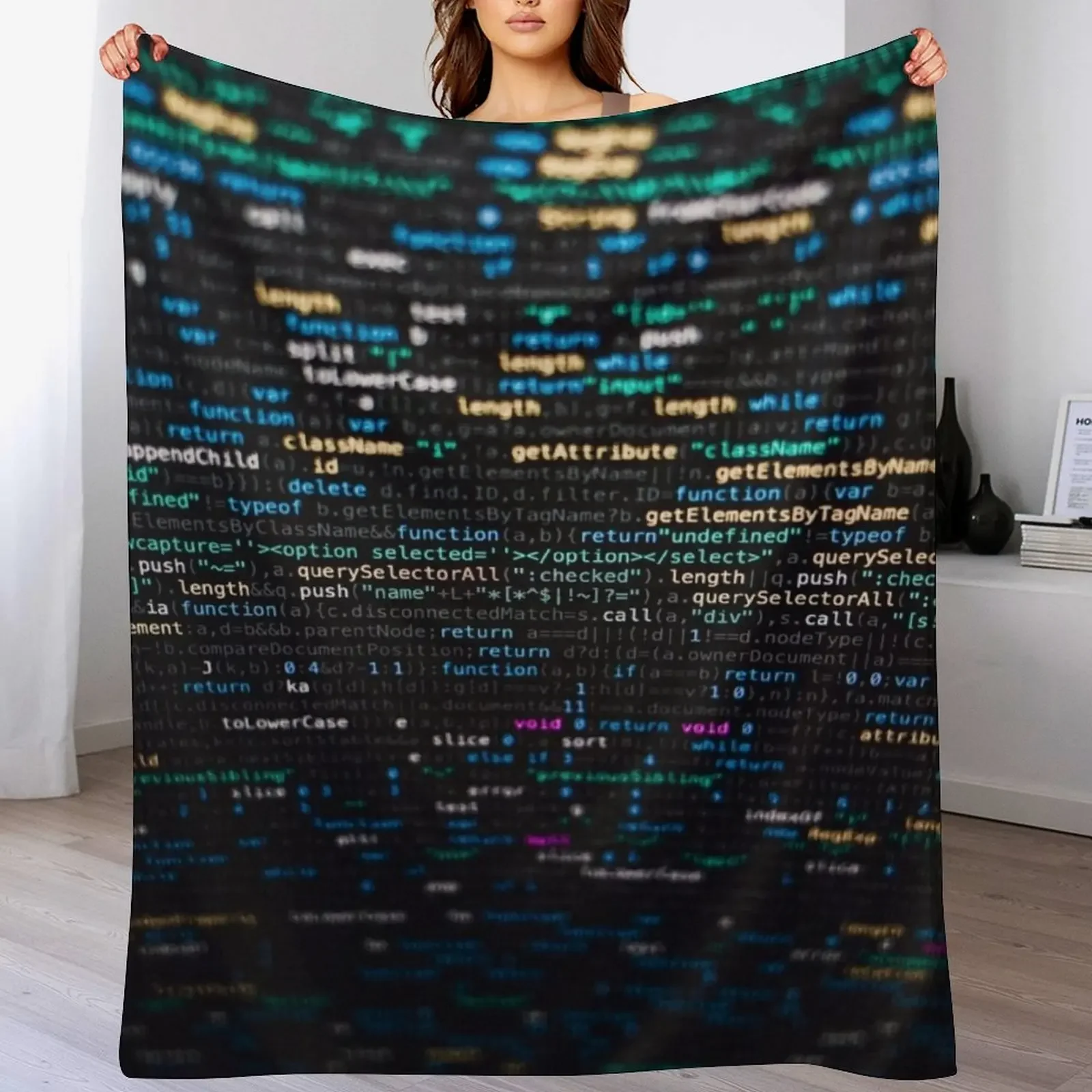 Software Developer Programming Code on Black Background Throw Blanket Warm Napping Blanket for Office Couch Bed