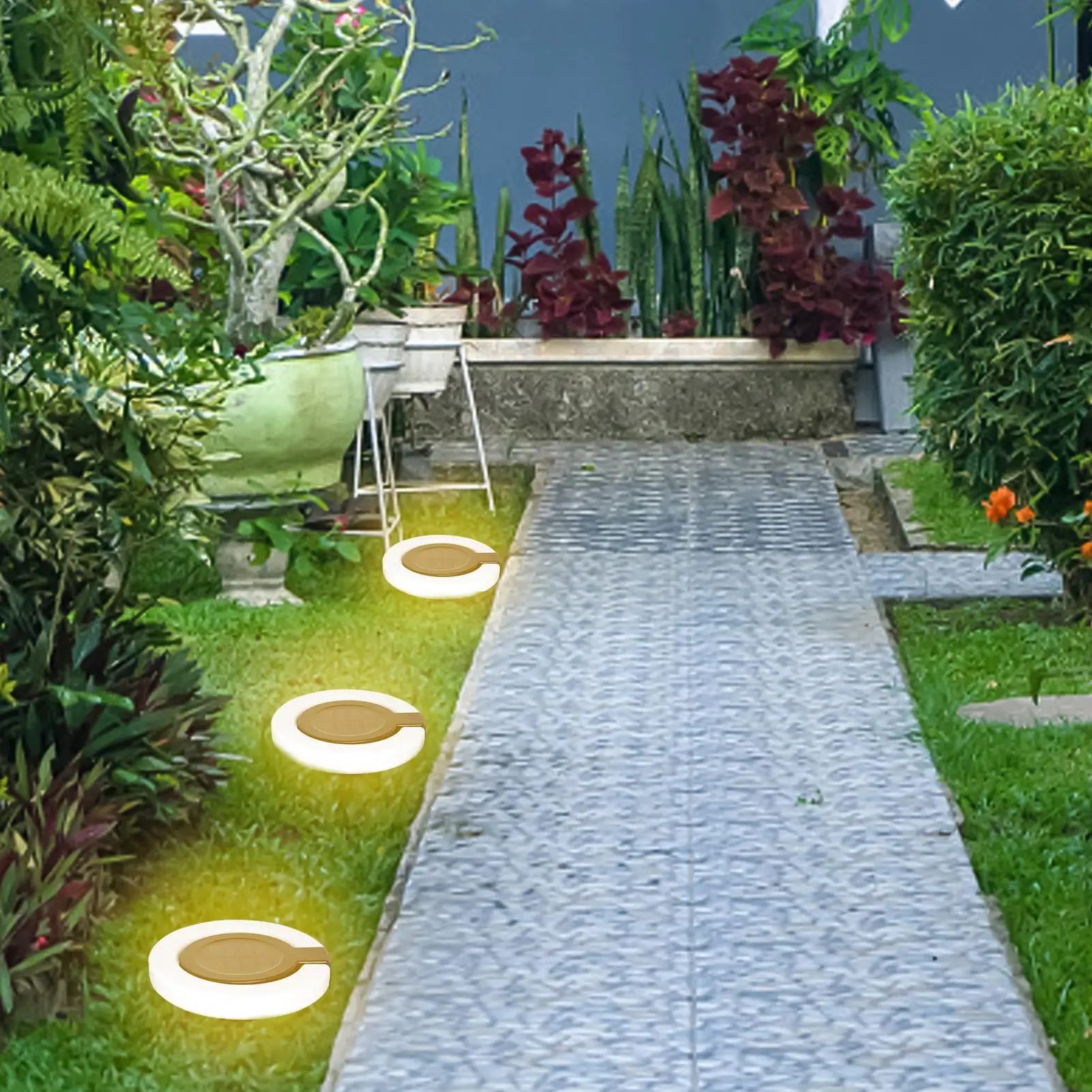 Solar Garden Stake Lights Waterproof Outdoor Disk Lamp 360 Degree Rotating LED Solar Garden Lights Smart Sensor For Backyard