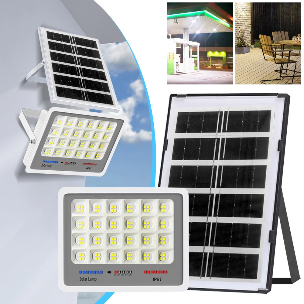 Solar Powered LED Flood Light IP67 Waterproof Spot Lights Multi Modes Outdoor Wall Floodlight Remote Control for Patio Path Yard