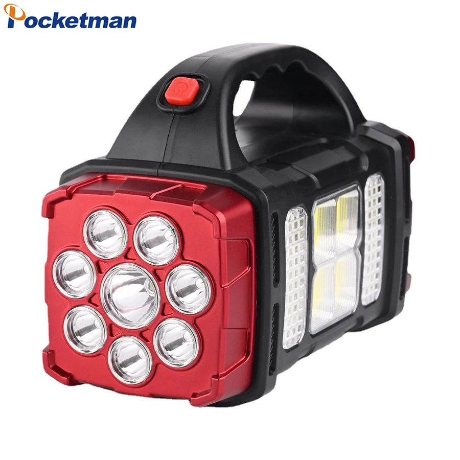 Solar/USB Rechargeable Powerful Hand Lamp Work Light Emergency Power Bank Camping LED Flashlight Dual Light Source Searchlight