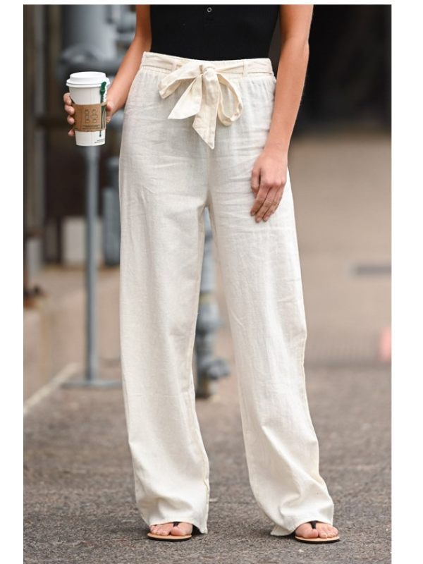 casual pants,solid color lace casual loose straight pants