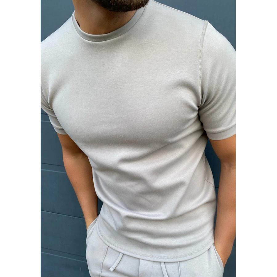 Solid Color Round Neck T-shirt