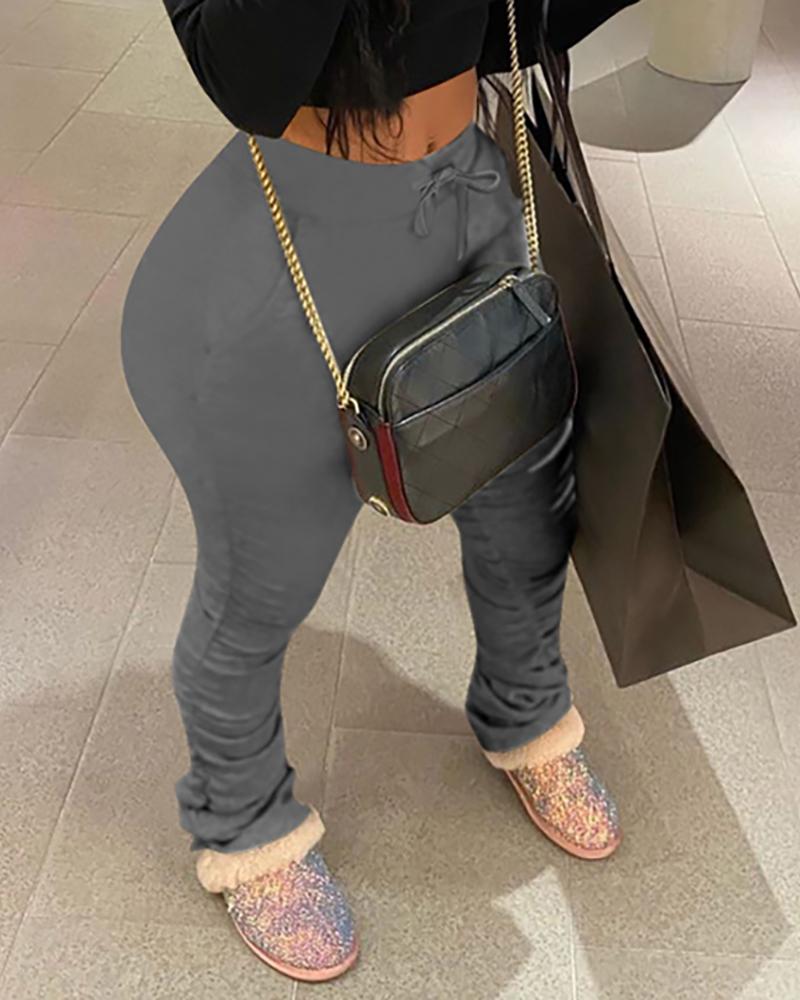 Solid Drawstring Deisgn Ruched Pants, Gray