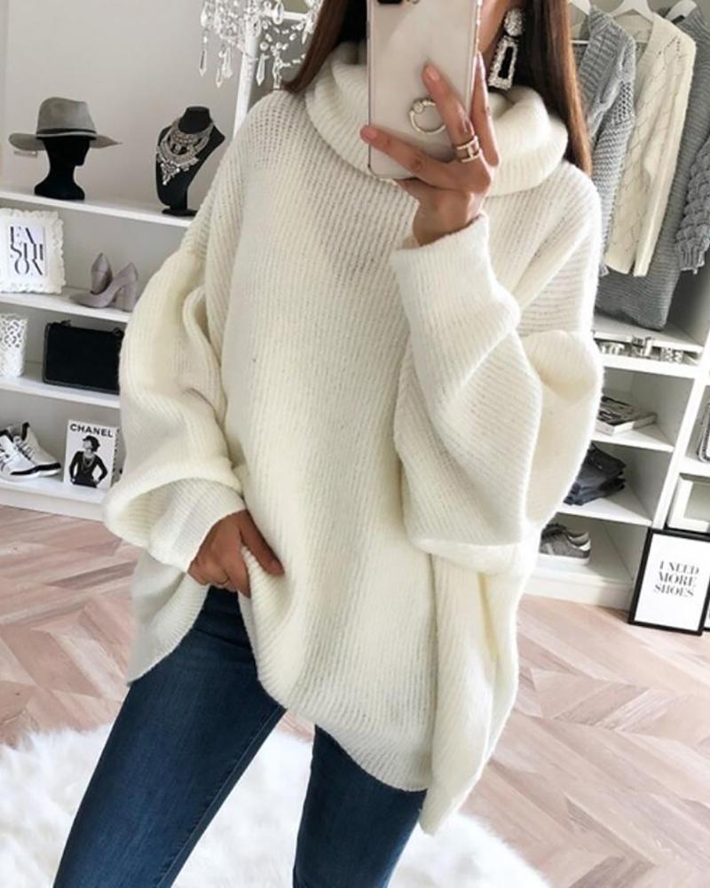 Solid High Neck Long Sleeve Ribbed Sweater