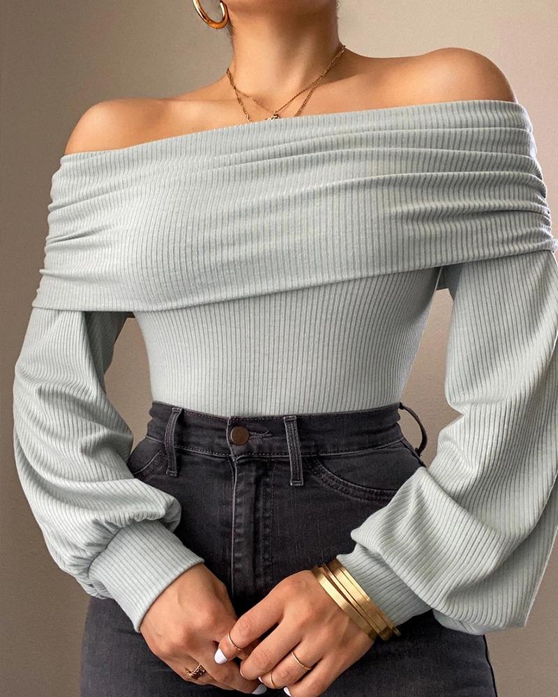 Solid Off Shoulder Ribbed Knit Top, Style1
