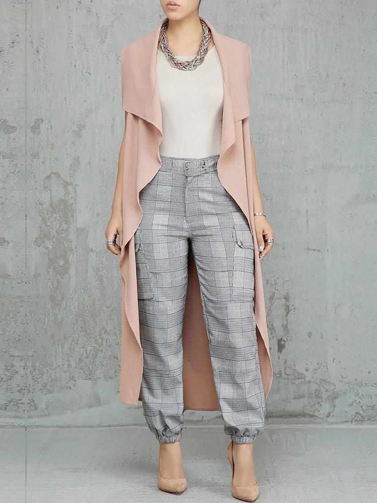 Solid Open Front Sleeveless Ruffles Coat