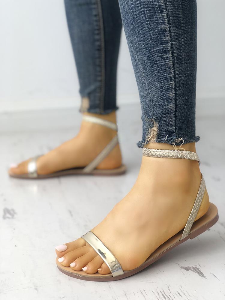 Solid Open Toe Single Strap Flat Sandals, Gold