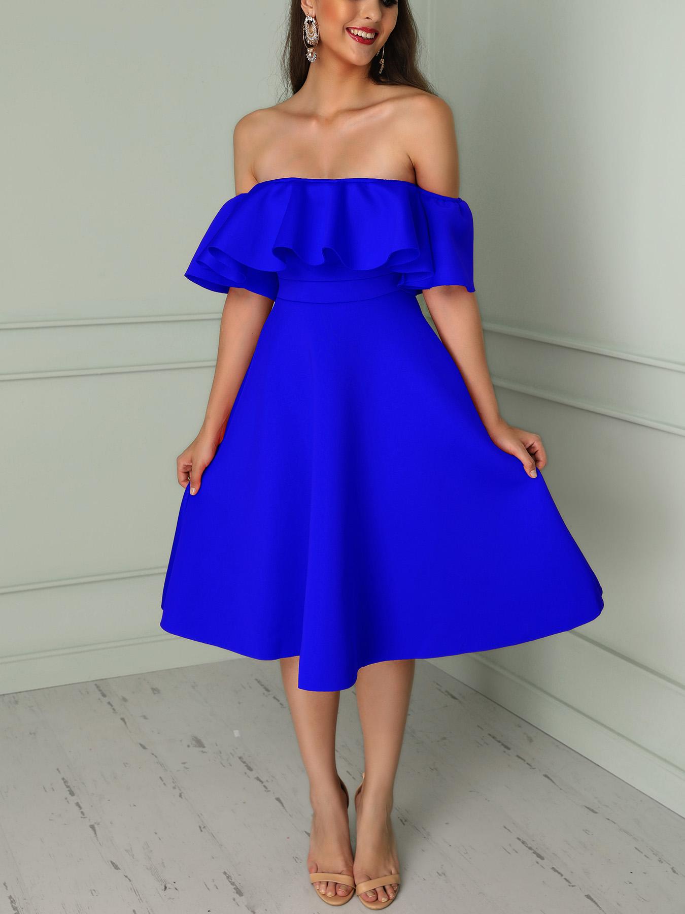Solid Ruffles Off Shoulder Pleated Mini Dress
