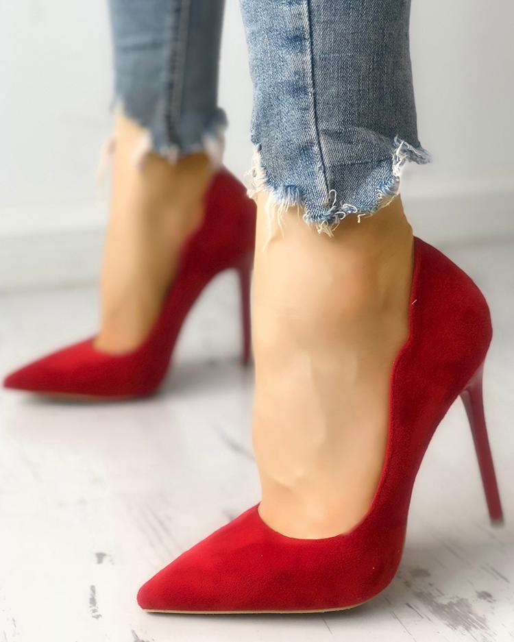 Solid Suede Pointed Toe Thin Heels, Red