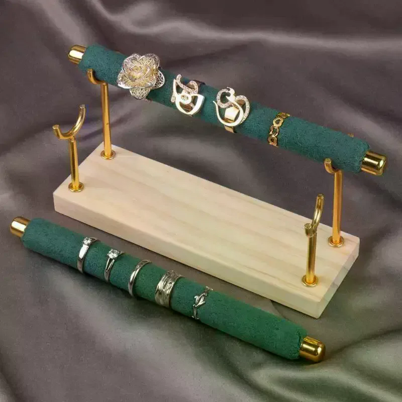 Solid Wood Base Ring Display Rack Sponge Stick Ring Holder Multi Layer Ring Storage And Organization Rack Removable Metal Rack