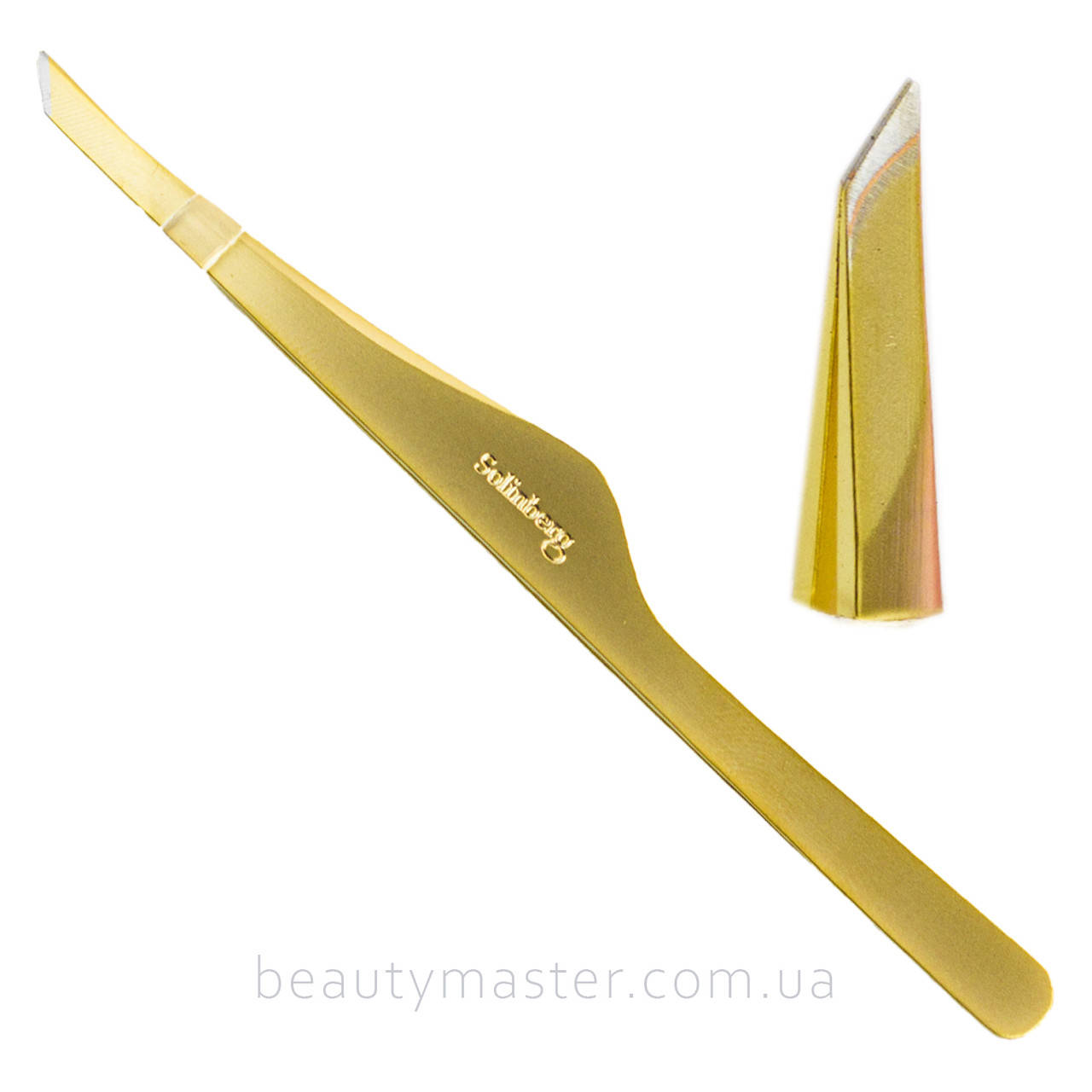 Пинцет для бровей Solinberg G805 (ручная заточка), золото, наклонное окончание с четкими гранями.