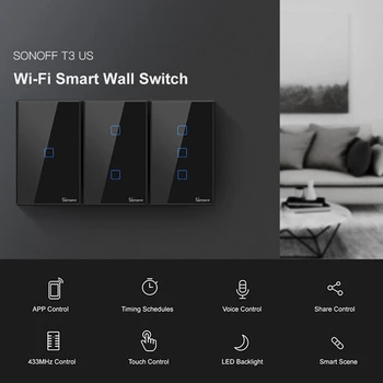 Sonoff TX T3 US Wifi Light Switch Timer 1/2/3 Gang Support Voice/APP/Touch Control Works For Google Home IFTTT