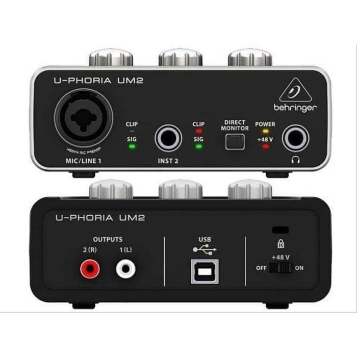 UM2, an ultra-compact 2 x 2, 48 kHz USB interface with a studio-grade XENYX Mic Preamp, combination XLR/TRS input for your vocal and direct instrument input (no DI required) and an additional ¼ " Instrument Input. The rich feature-set, which also boasts a powerful Phones Output for the Direct Monitoring of your session, plus 2 Outputs and USB-supplied power – makes the UM2 the best, and most-portable recording interface in its class!