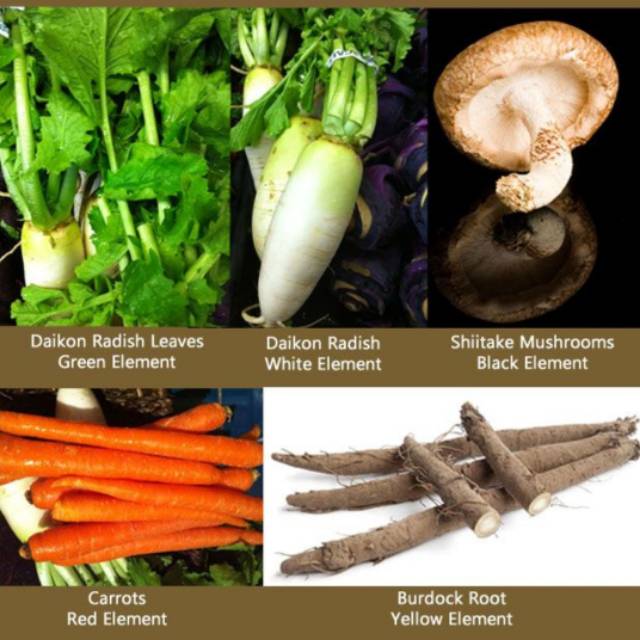 Lima elemen sup ajaib atau kaldu biasanya digunakan dalam penyembuhan alami untuk sifat anti kankernya. Itu dibuat oleh Dr. Tateishi Kazu yang mendasarkan sup pada prinsip-prinsip teori lima elemen dalam pengobatan Tiongkok. Keseimbangan harmonisasi dari kekuatan Yin dan Yang, asam dan basa, yang menghasilkan kesehatan; berbeda dengan ketidakseimbangan, yang mengarah pada penyakit.