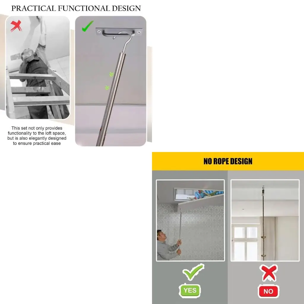 Space Saving Pull Down Ladder Set with Stainless Steel Rod Attic Ladder Set