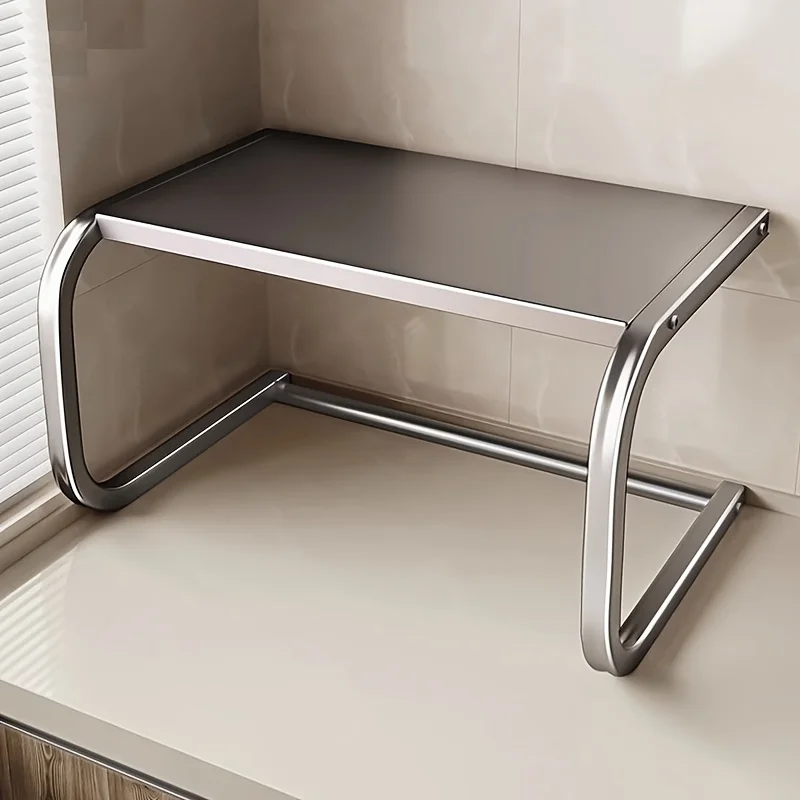 Spacious 2-Tier Metal Microwave Rack, Countertop Storage Shelf for Oven & Baking, No Assembly Needed, Sturdy Kitchen Organizer