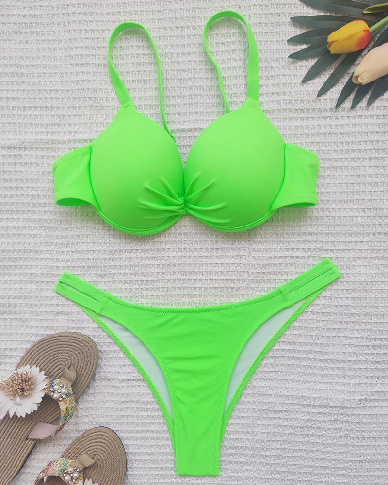 Spaghetti Strap Ruched Bikini Set, Green