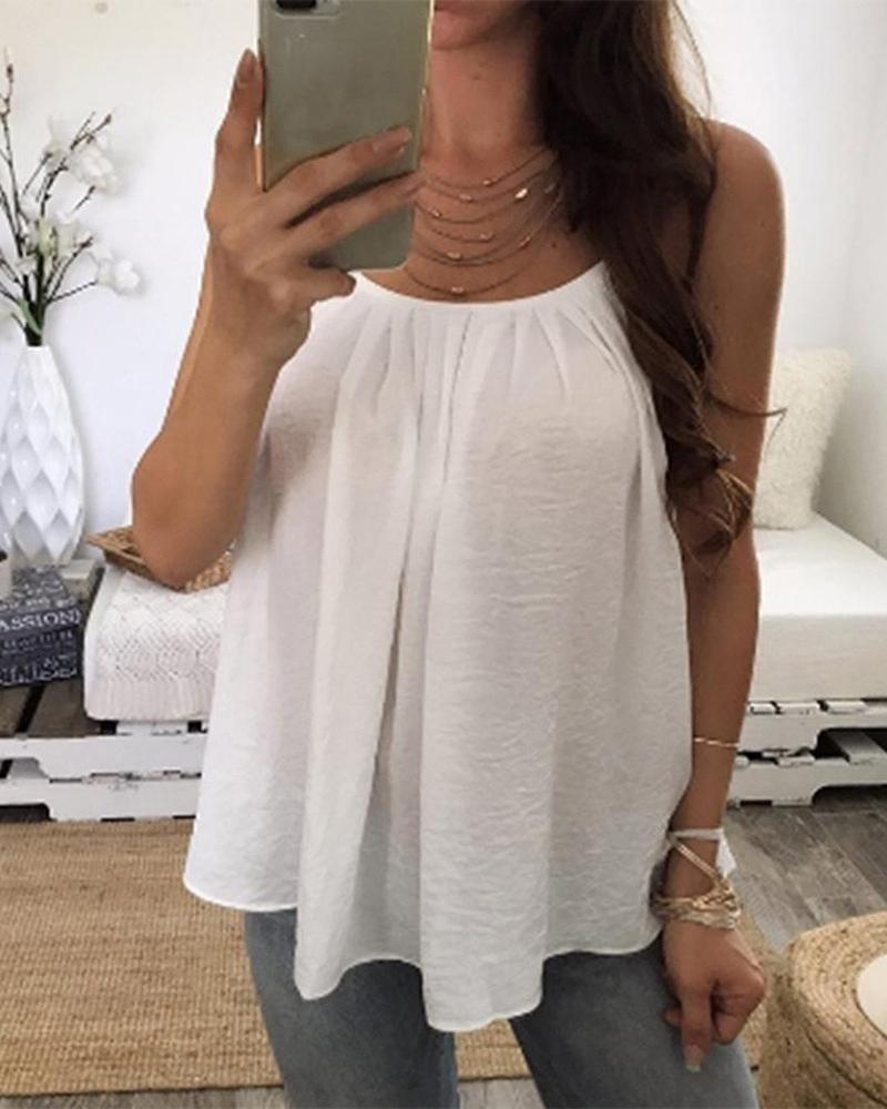 Spaghetti Strap U-Neck Ruched Casual Top, White
