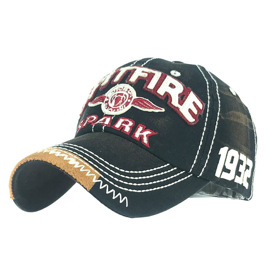 Spark Letter Washed Cotton Baseball Cap Letter Embroidered Cap Sun Sun Hat