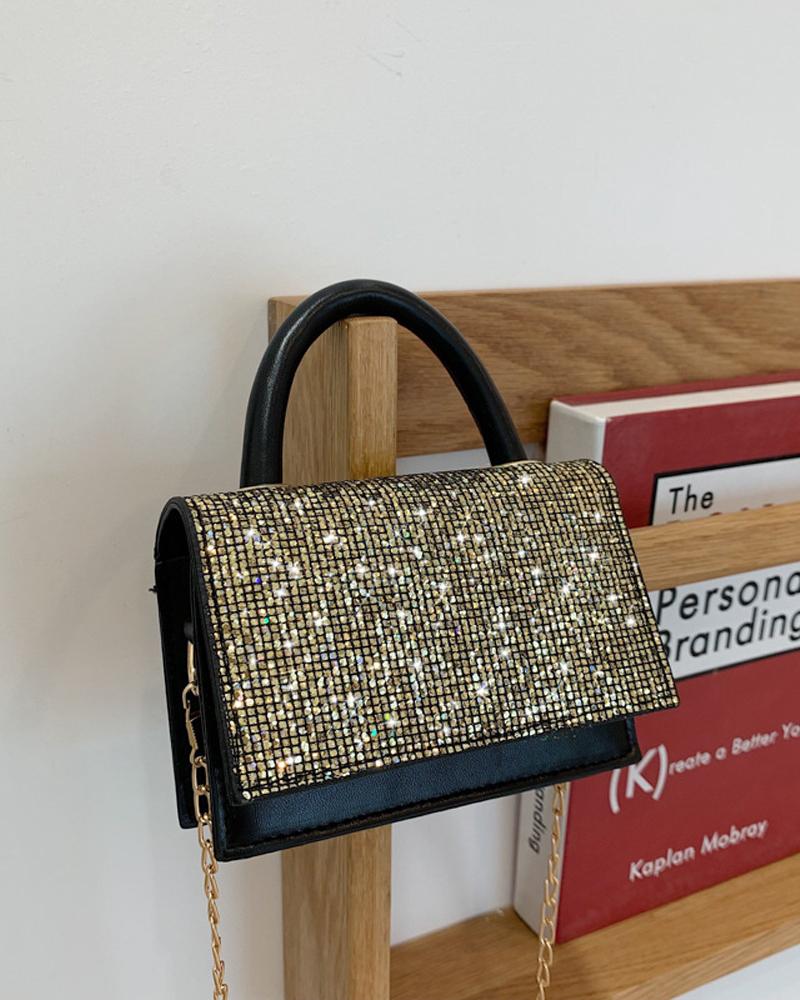 Sparkling Rhinestone Decor Chain Strap Mini Shoulder Bag, Gold