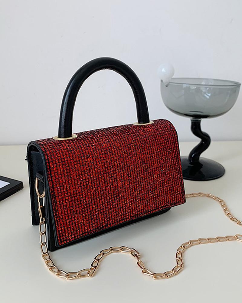 Sparkling Rhinestone Decor Chain Strap Mini Shoulder Bag, Red