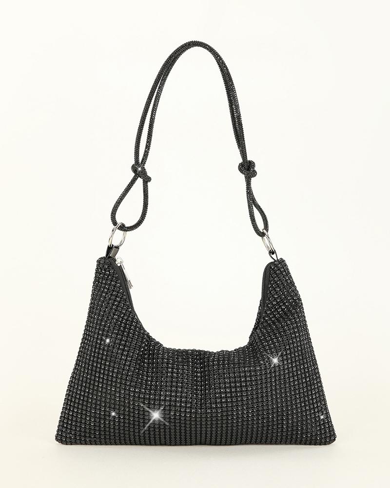 Sparkling Rhinestone Decor Evening Bag, Black