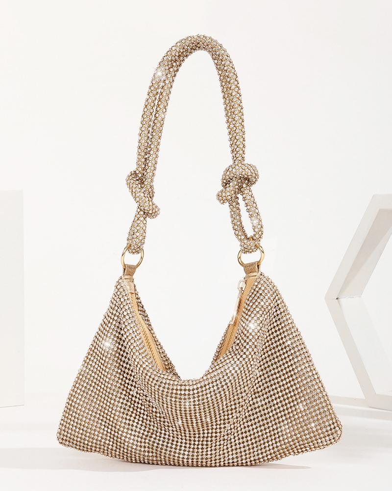 Sparkling Rhinestone Decor Evening Bag, Gold