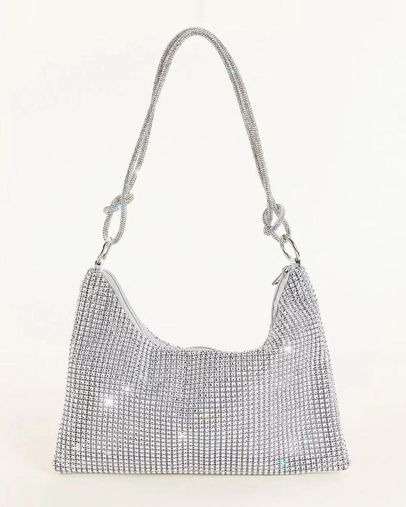 Sparkling Rhinestone Decor Evening Bag, Silver