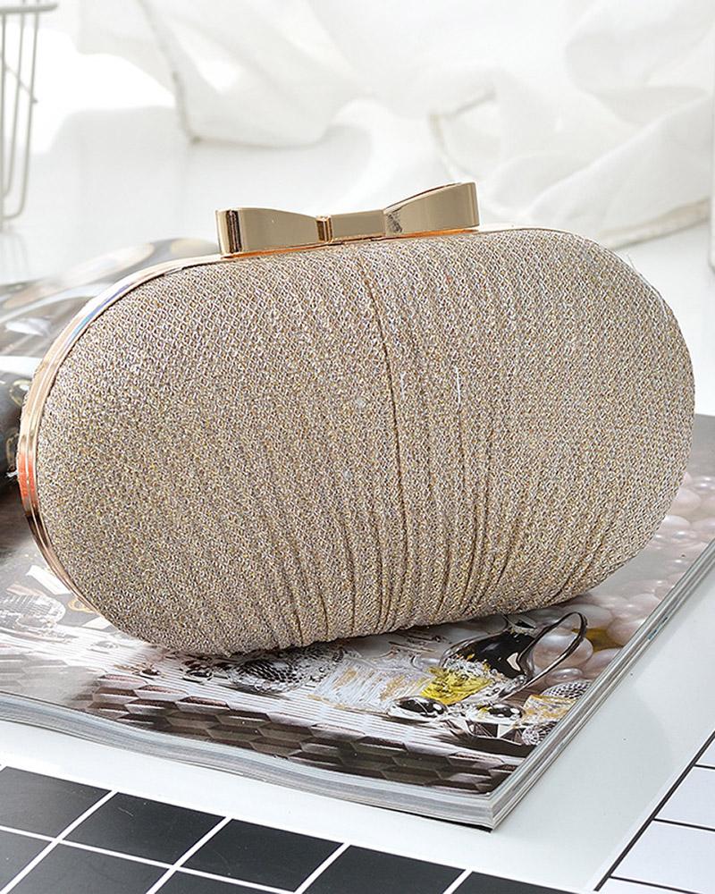 Sparkling Ruched Bowknot Design Handbag, Gold
