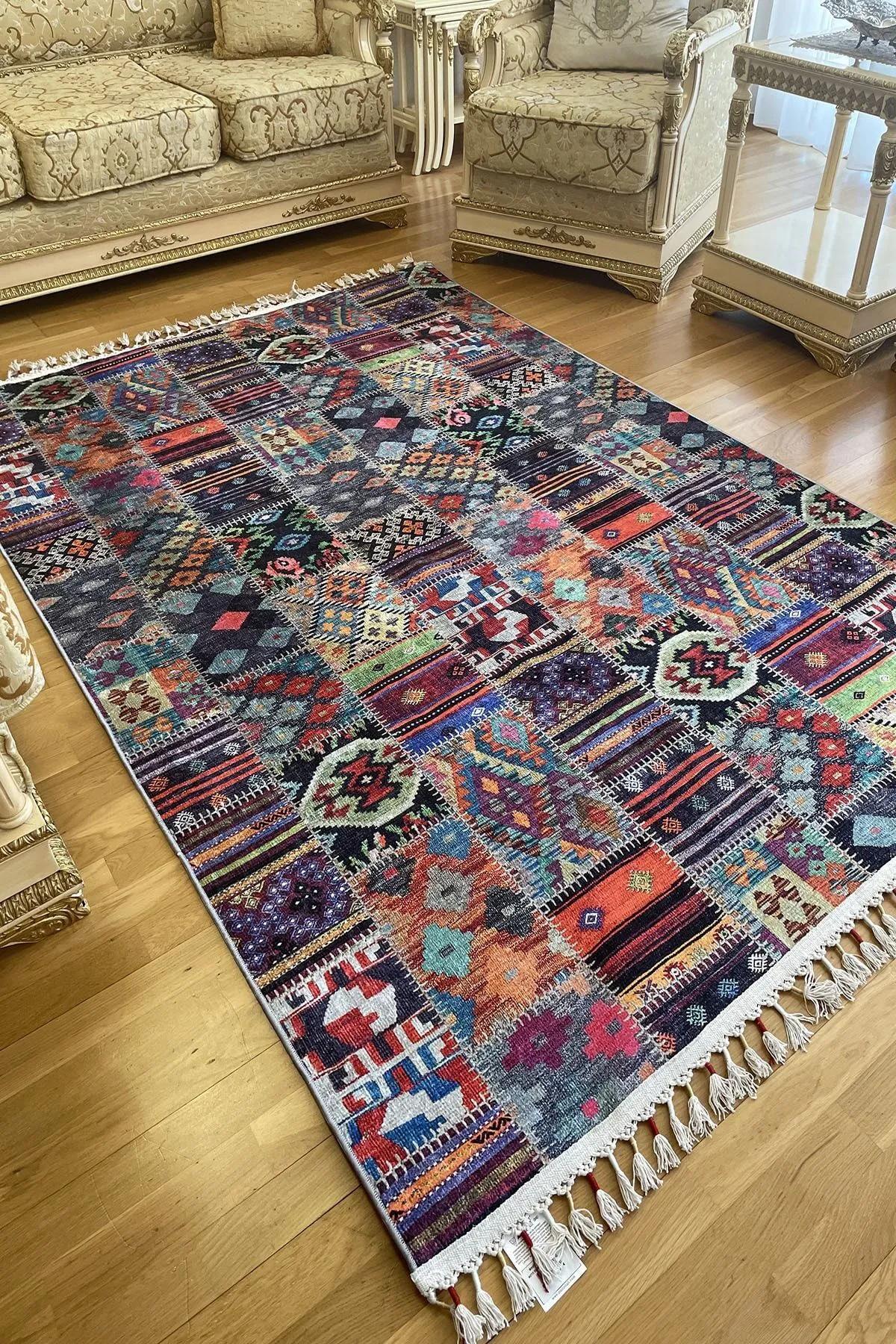 Special Series Ottoman Motif Embroidered Woven Carpet, Washable Non-Slip Base Rug Living Room Carpet Kitchen Carpet Runner