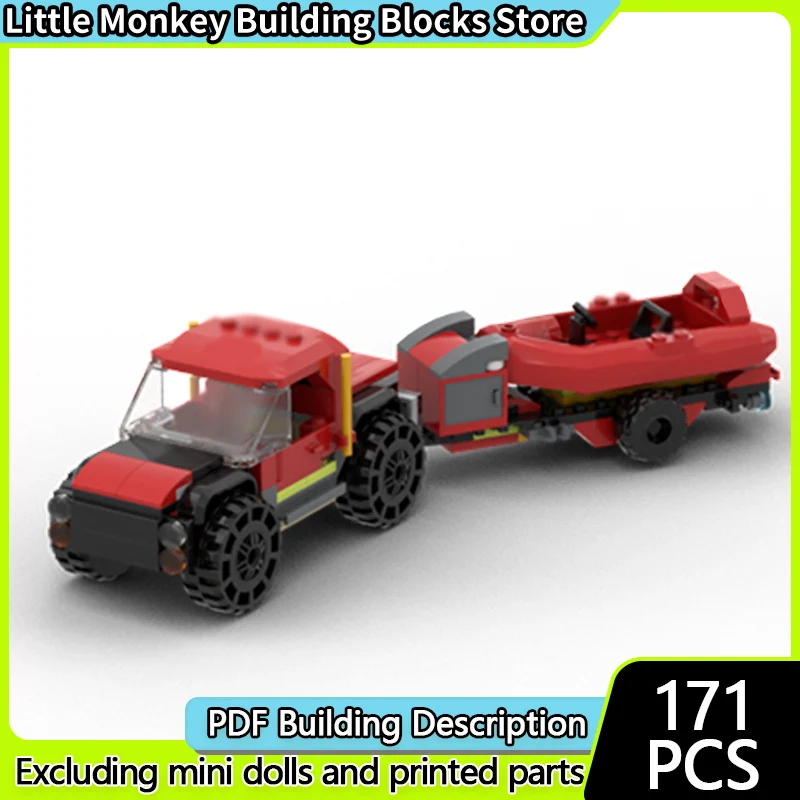 Speed Racing Car Model MOC Building Bricks Off-Road Vehicle With Boat Modular Technology Children Holiday Gift Assemble Toy Suit