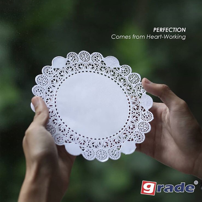 Berbahan kertas, untuk alas kue, alas hidangan, alas piring dan bisa juga sebagai hiasan/dekorasi.