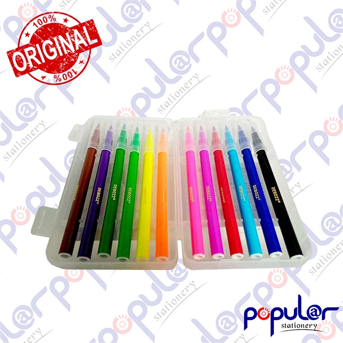 Spidol dengan 12 Warna Brush Pen Merupakan Sepidol Warna dengan ujung mata seperti kuas di peruntukan untuk Melukis dan Menulis Kaligrafi