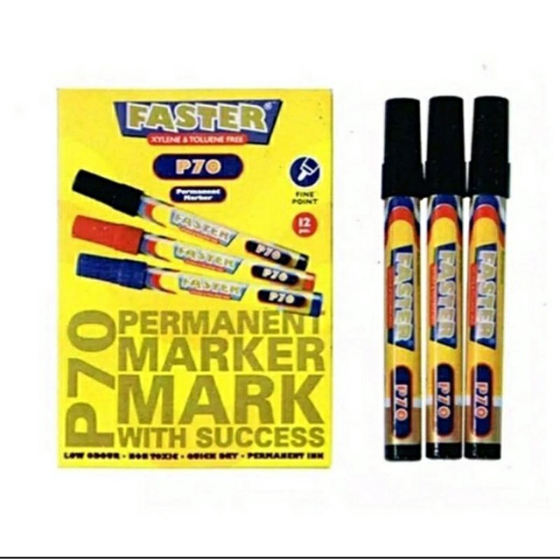 Spidol Faster merupakan spidol dengan kualitas yang baik dengan harga murah. Dapat diaplikasikan di hampir semua permukaan. Cepat kering dan tahan air. Cocok digunakan di segala kondisi.