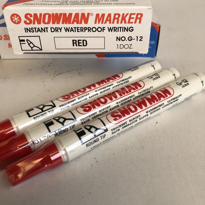 SPIDOL SNOWMAN PERMANEN MERAH merupakan spidol persembahan SNOWMAN yang terbuat dari bahan berkualitas sehingga tidak mudah luntur. Spidol ini memiliki daya serap yang baik sehingga cepat kering. Untuk warna yang di hasilkan dari spidol SNOWMAN ini sangat tinggi pigmentasi membuat hasil tulisan jelas dan menarik. Dengan spidol ini tulisan tidak bisa dihapus/ Permanen