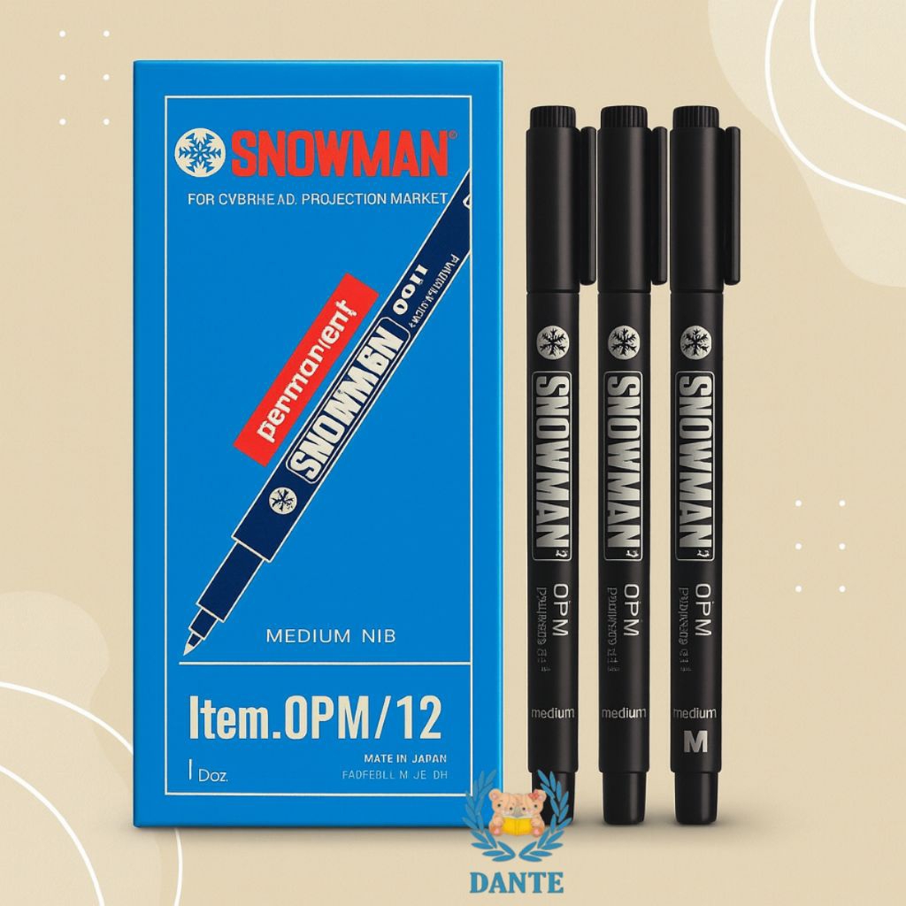 Snowman OHP Permanent Marker OPM adalah tinta permanen yang dapat ditulis diatas permukaan besi, logam, kaca, kulit plastik, keramik, dll. Menghasilkan goresan tulisan yang tak tidak terputus dan warna tinta yang pekat