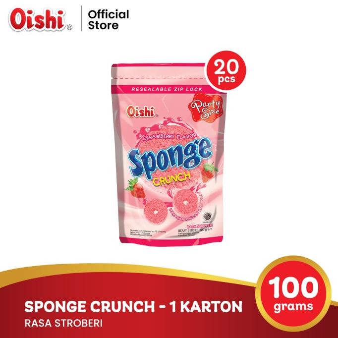 OISHI MAKANAN RINGAN EKSTRUDAT RASA STROBERI (SPONGE CRUNCH STRAWBERRY FLAVOR) 100g